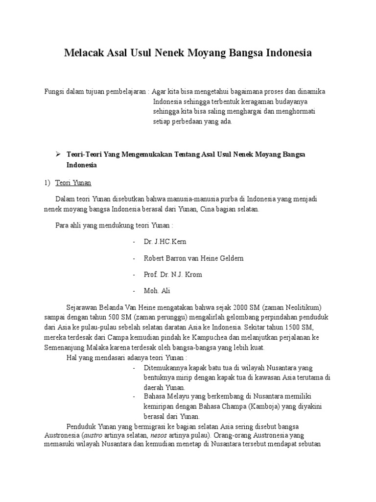 DOC) Teori Asal-usul Nenek Moyang Bangsa Indonesia | ALYA RAISA …