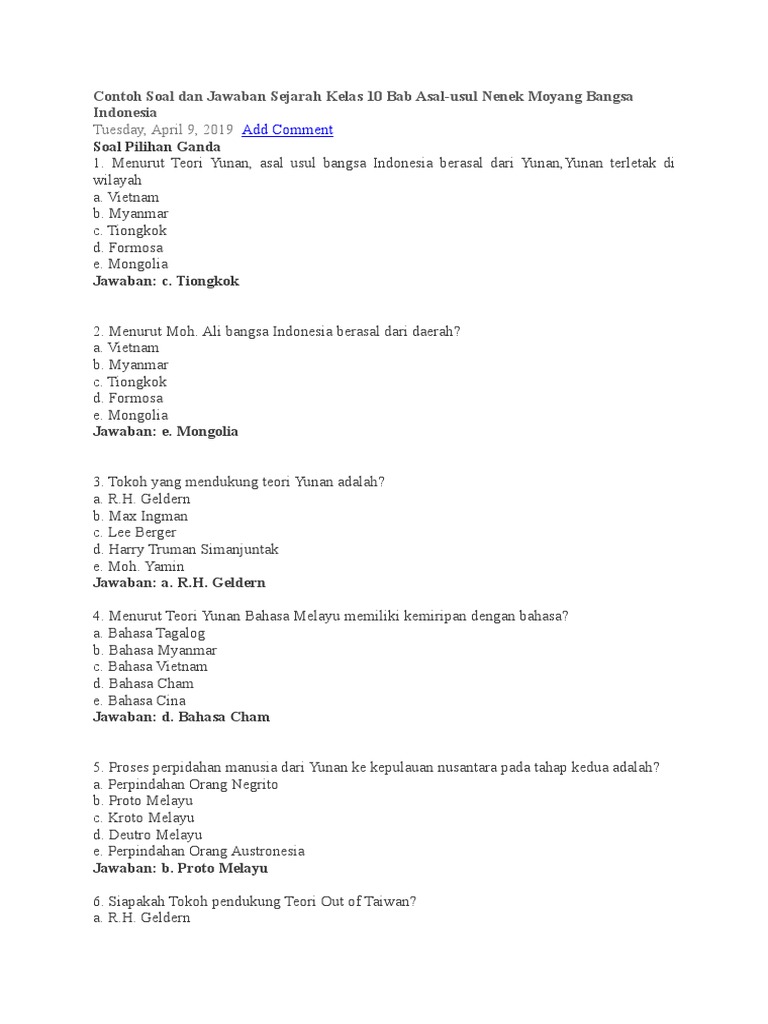 Soal Sejarah Tentang Asal Usul Nenek Moyang Bangsa Indonesia …