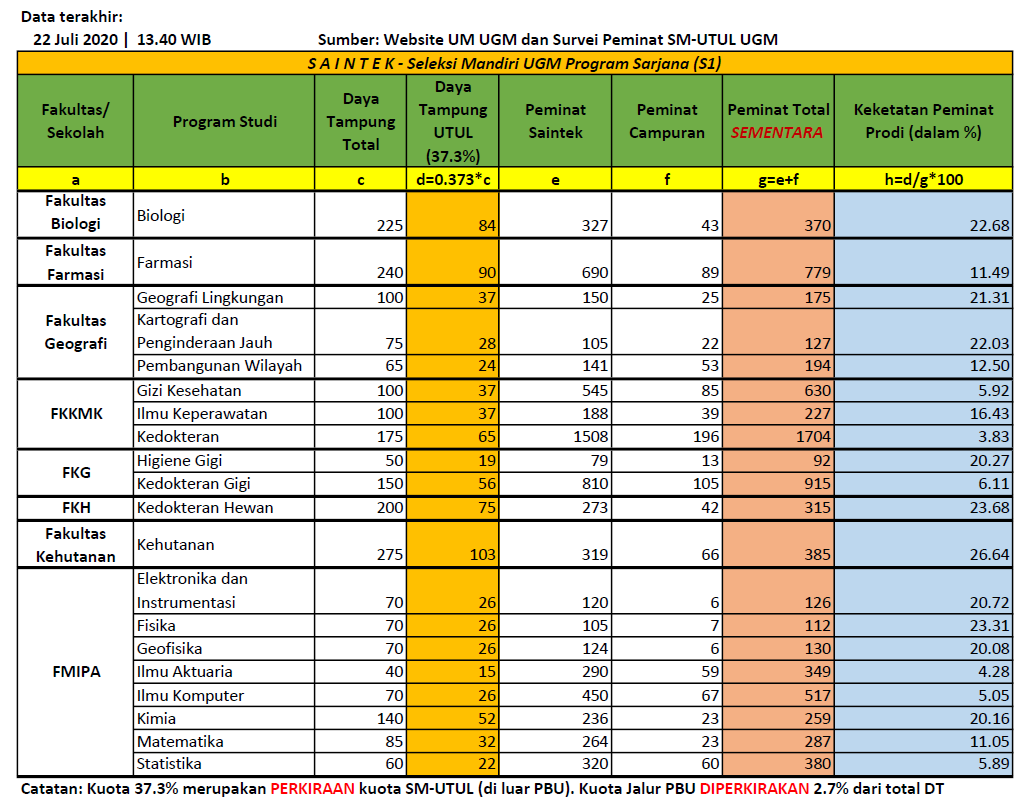 Sarjana Revit on Twitter: “📝 Data Peminat Program S1 dan D4 SM UGM 2020 📝 Data 22 Juli 2020 pukul 13.40 (dari channel telegram) Untuk keketatan, semakin rendah angkanya maka semakin ketat.”