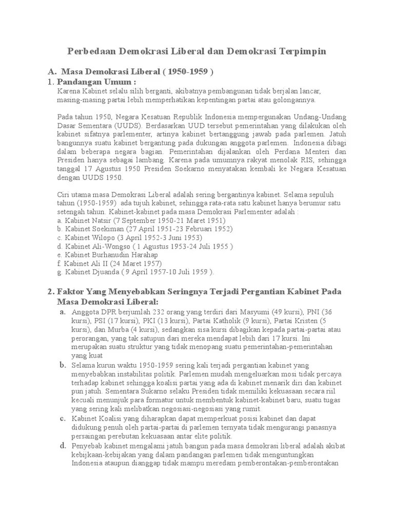 Perkembangan Politik Pada Masa Demokrasi Liberal Dan Demokrasi …