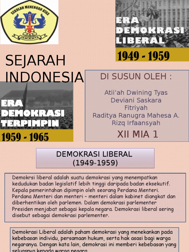 SEJARAH (INDONESIA PADA MASA DEMOKRASI LIBERAL DAN DEMOKRASI …