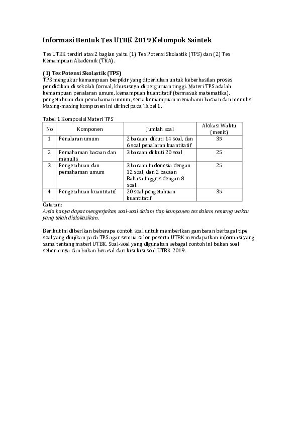 PDF) Contoh Tes UTBK TPS TKA Saintek | ferdha pratama - Academia.edu