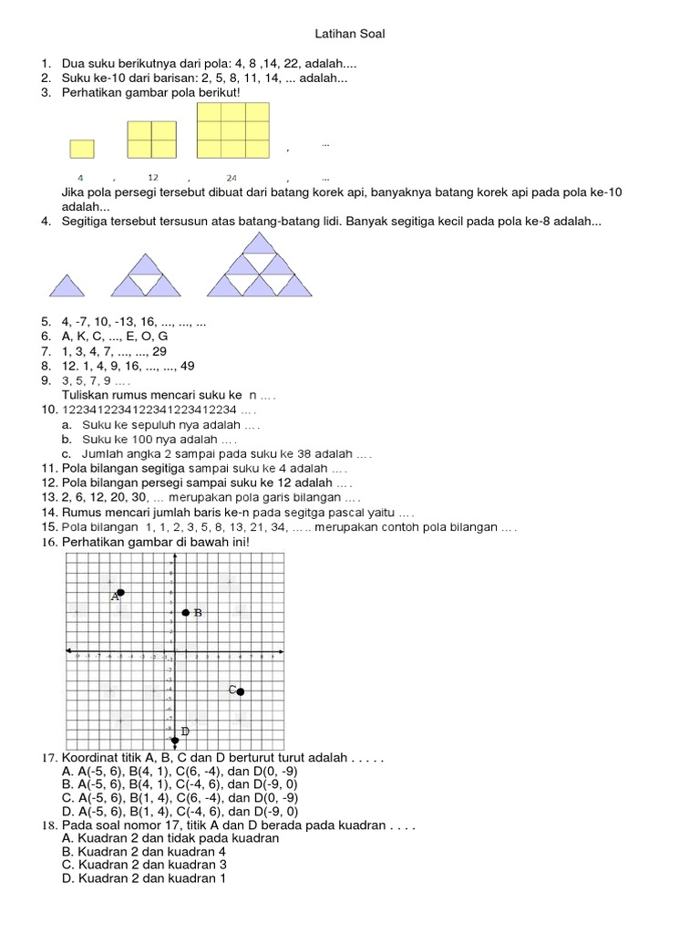 Soal Pola Bilangan Smp Kelas 8 Dan Pembahasannya Doc - OPS SEKOLAH …