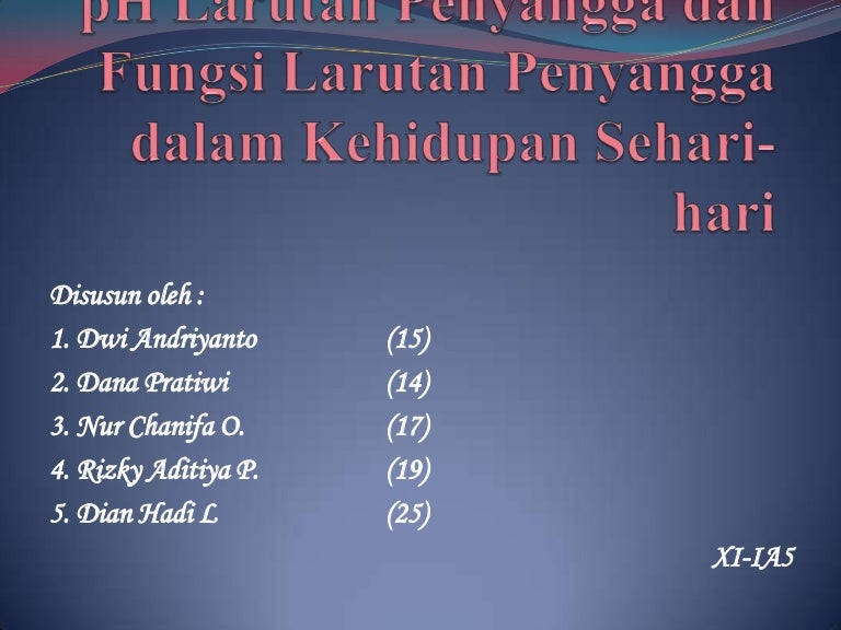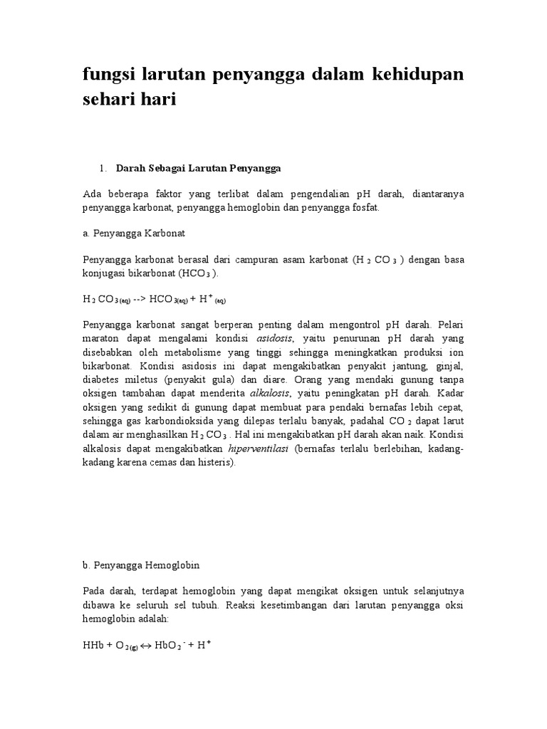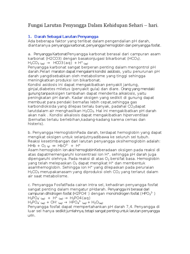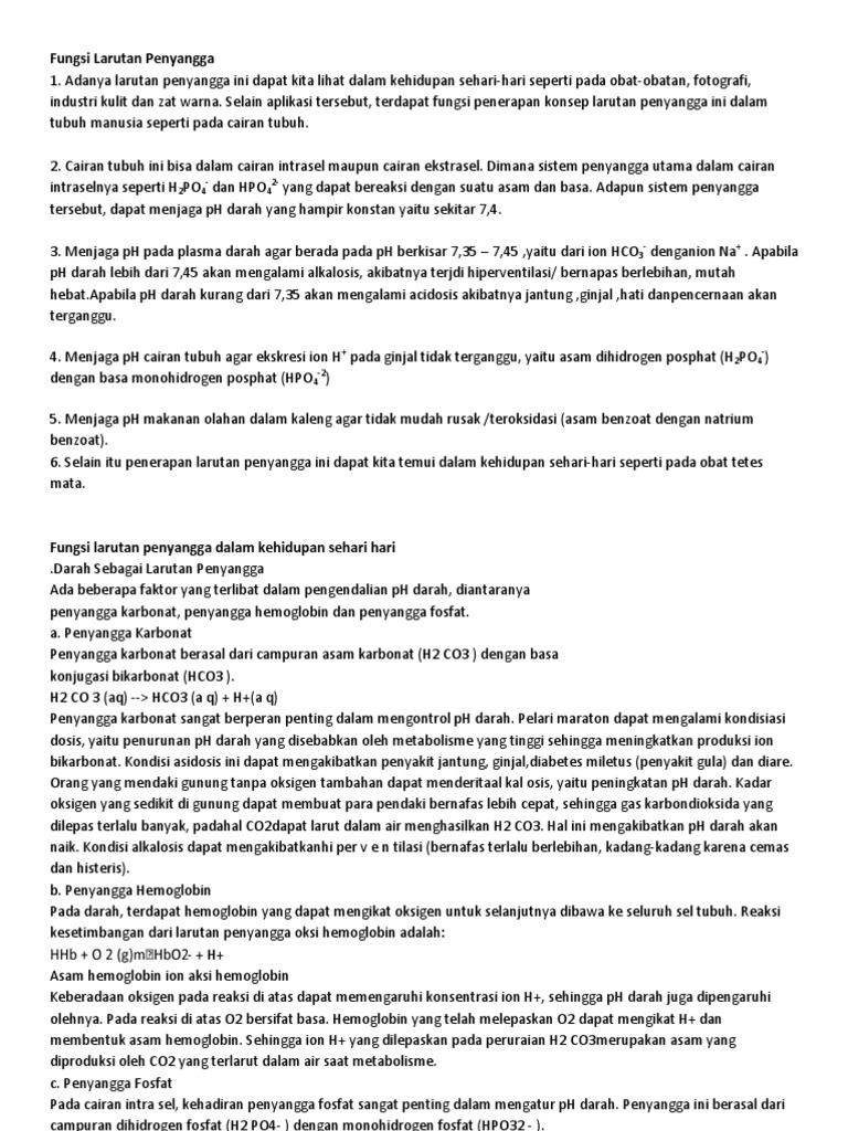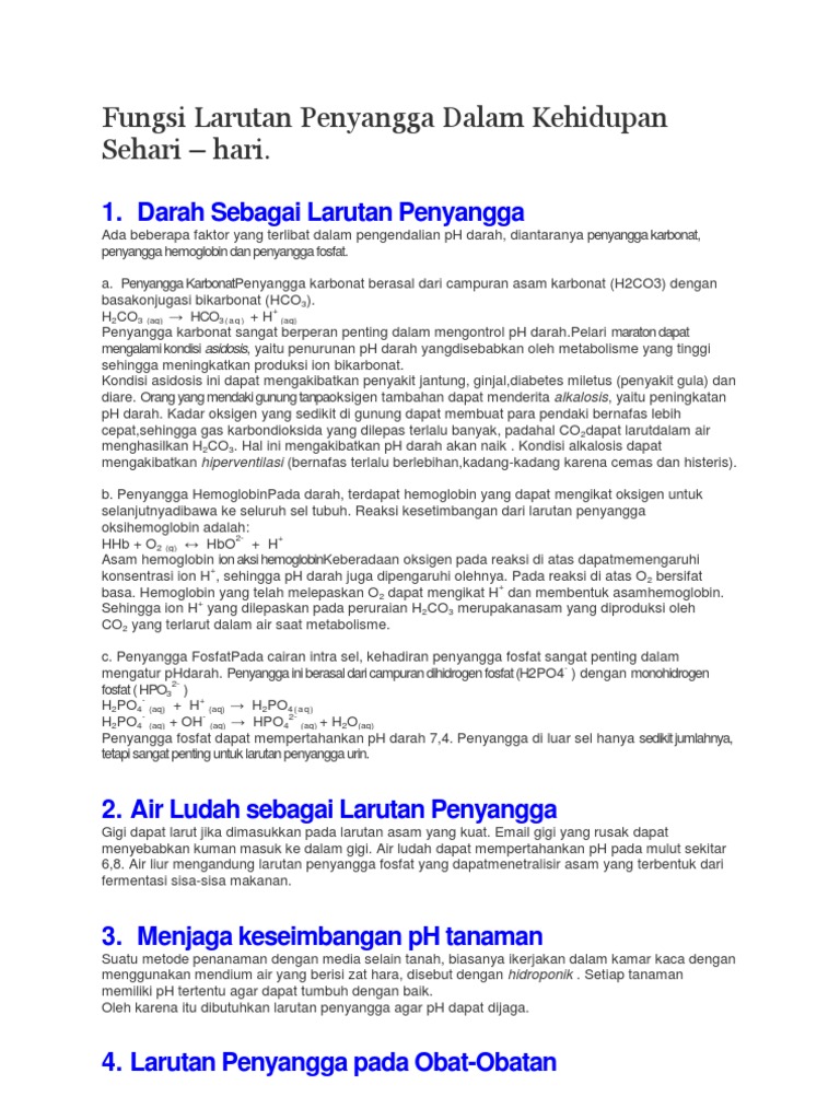 Sebutkan Fungsi Larutan Penyangga Dalam Kehidupan Sehari Hari …
