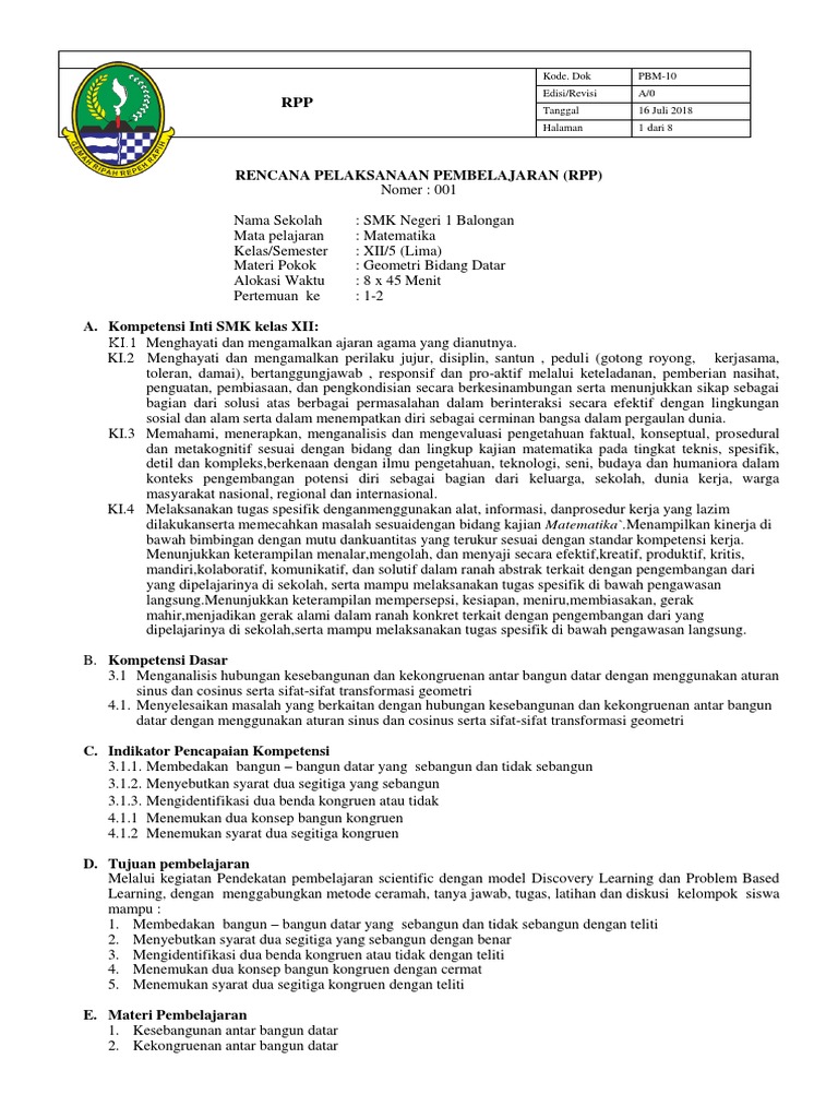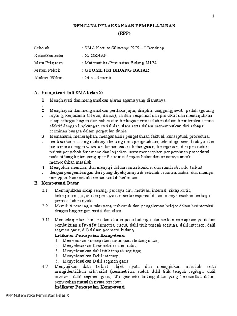 DOC) 6. geometri bidang datar - rpp x mia peminatan - rpp x iis …