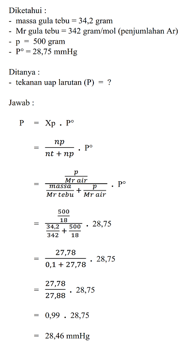 Penurunan Tekanan Uap Jenuh (ΔP) Larutan, Rumus, Contoh Soal, Pembahasan, Praktikum, Kimia