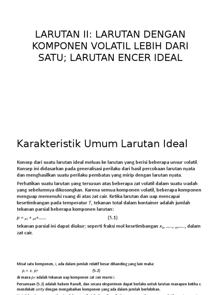 Larutan Ii: Larutan Dengan Komponen Volatil Lebih Dari Satu; Larutan Encer Ideal