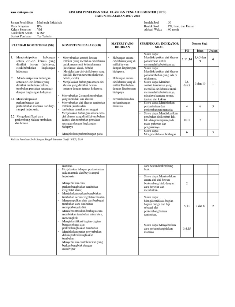 Kisi Kisi UTS IPA Kelas 6 Semester 1/ Ganjil - soalbagus.com