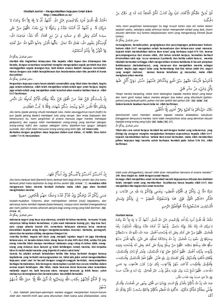 Khutbah Jum’at - Mengembalikan Kejayaan Umat Islam