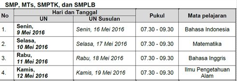 NOVE HASANAH: Jadwal Pelaksanaan UN tahun 2016 SMP dan SMA Sederajat