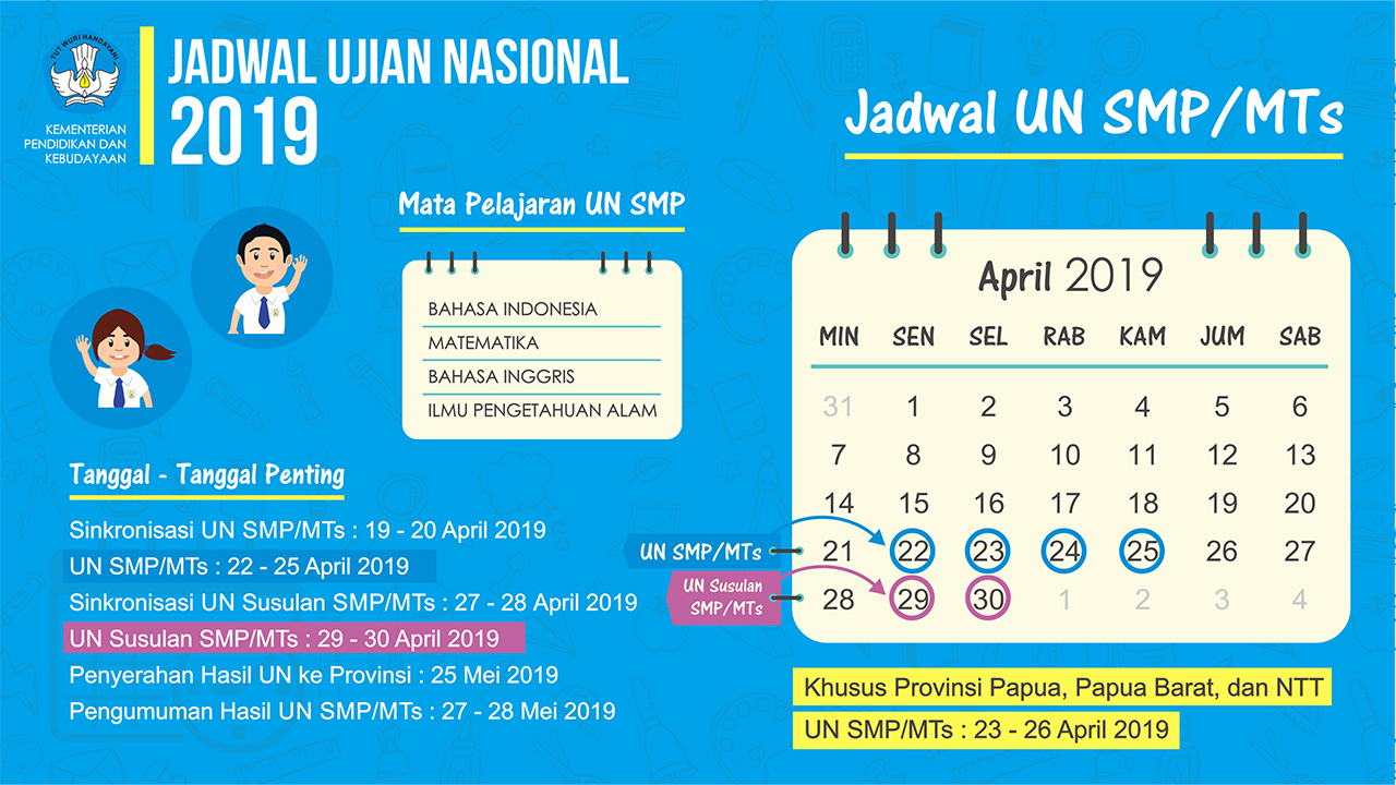 JADWAL UN SMP, MTs, SMA, SMK, MA, UN SUSULAN, PAKET C&B 2019 …