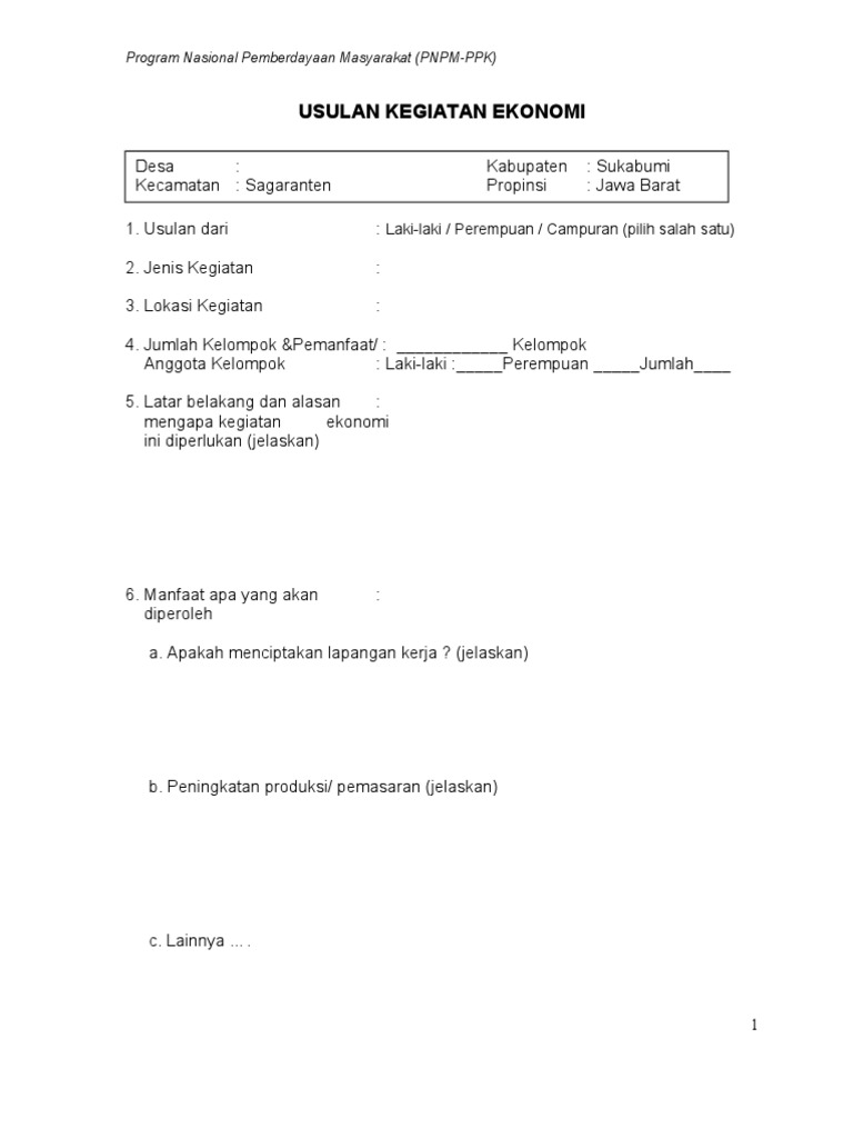 Usulan Kegiatan Ekonomi