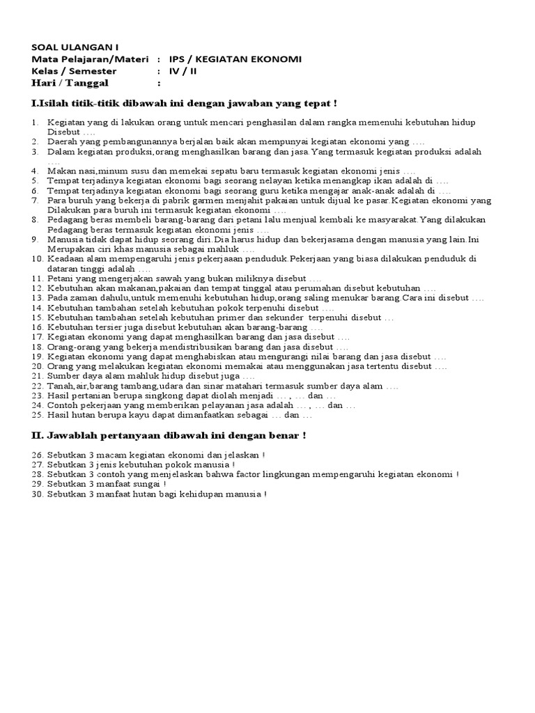 Soal Ulangan 1 Kegiatan Ekonomi