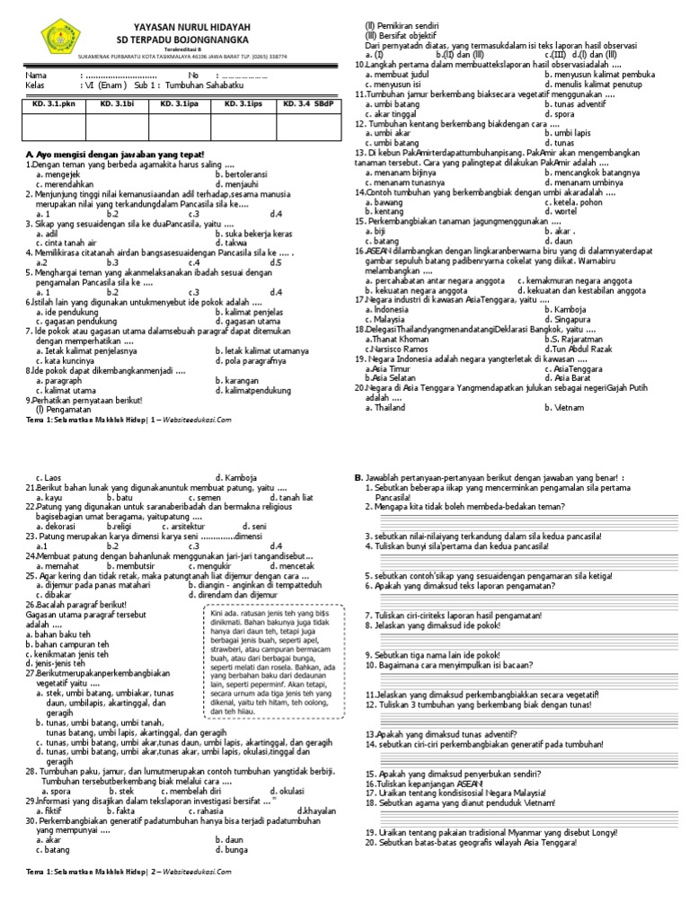 Yayasan Nurul Hidayah Sd Terpadu Bojongnangka: A. Ayo mengisi …