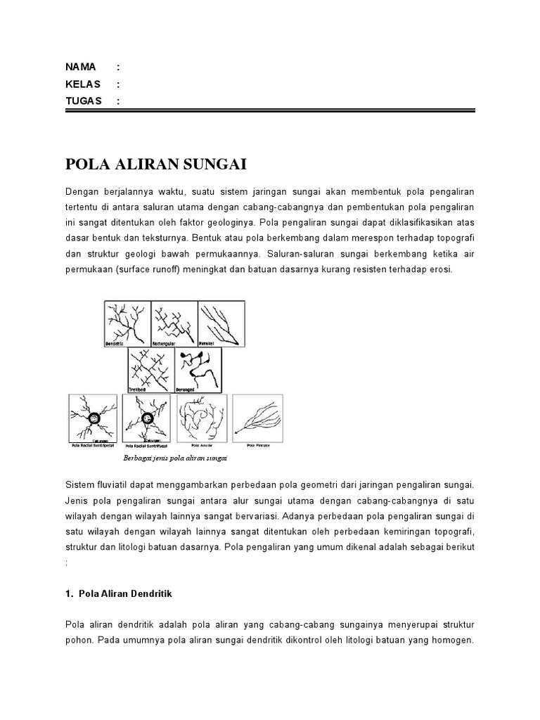 Pola Aliran Sungai: Nama: Kelas: Tugas