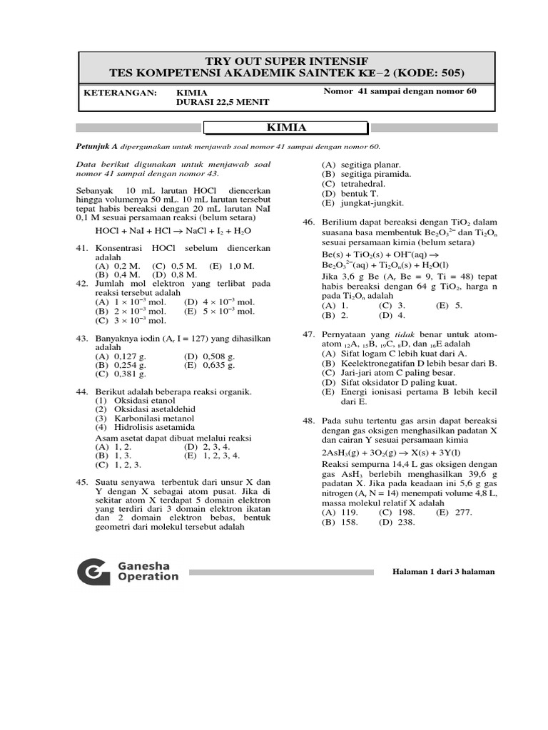 GO KIM 505.pdf - Program TKA Saintek TP 2018/2019 Kode 505 TRY …