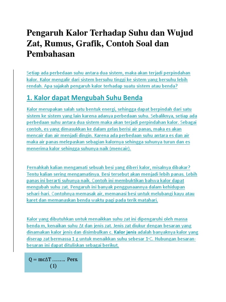 Pengaruh dan Hubungan Kalor Terhadap Suhu Benda, Rumus, Contoh …