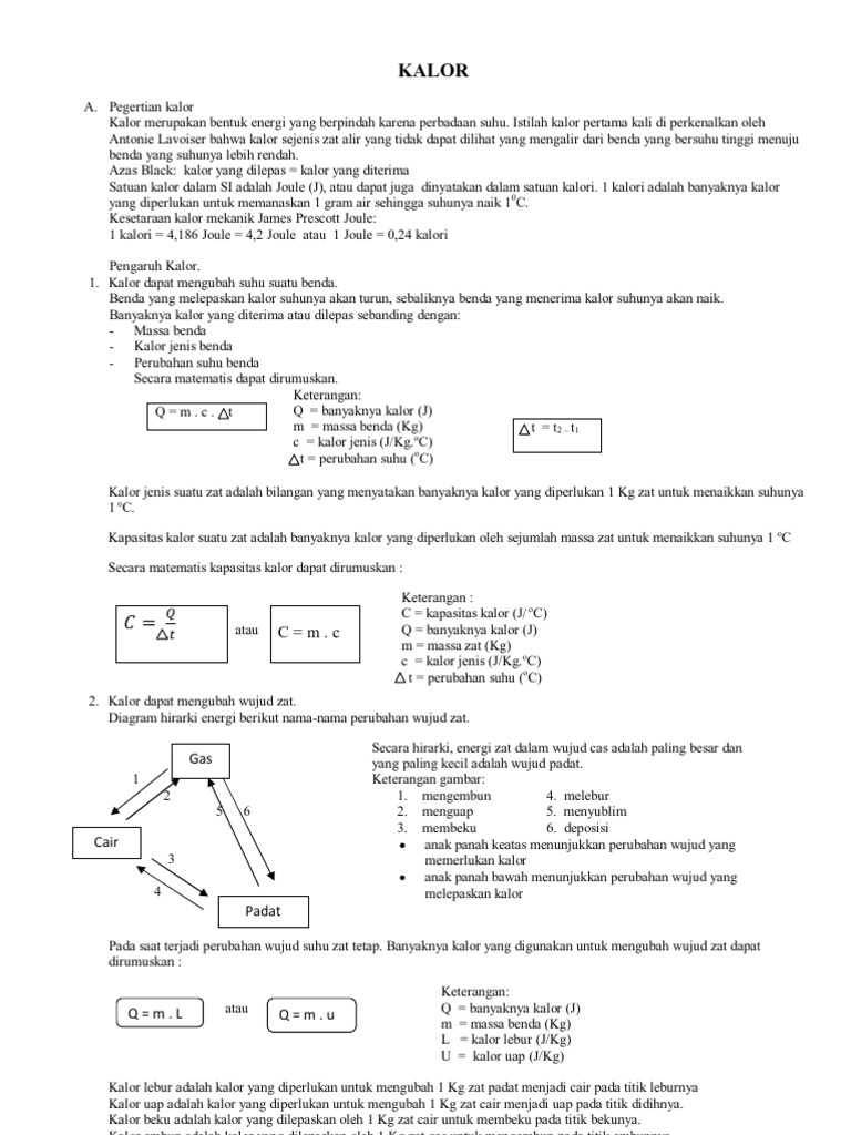 A. Suhu dan Pemuaian B. Kalor dan Perubahan Wujud C
