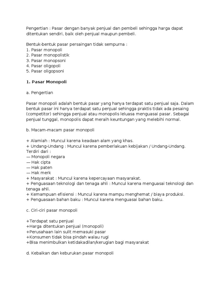Pengertian pasar monopoli, monopolistik dan oligopoly – Hasan Mustofa