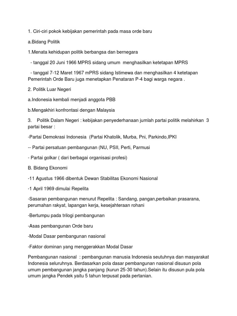 Dampak Kebijakan Politik Dan Ekonomi Masa Orde Baru - Your All in …