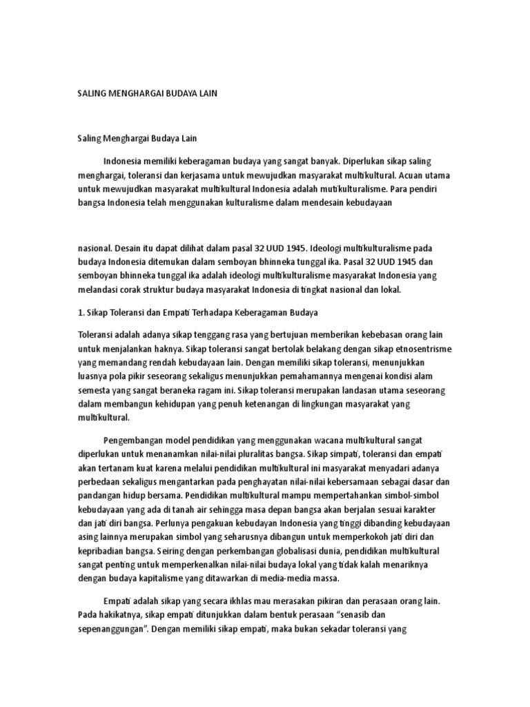 Sikap yg mencerminkan saling menghargai keragaman budaya adalah - Brainly.co.id