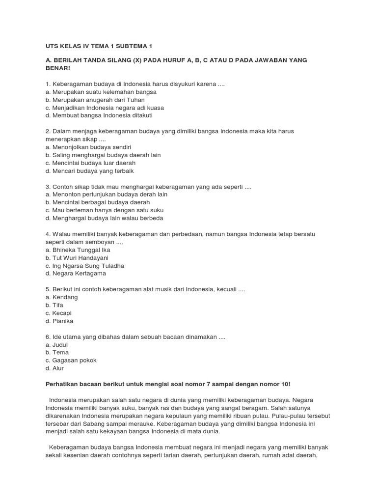 DOC) TEMA 1: INDAHNYA KEBERSAMAAN SUB TEMA 1: KEBERAGAMAN BUDAYA BANGSAKU | Antonius Wahyudi - Academia.edu