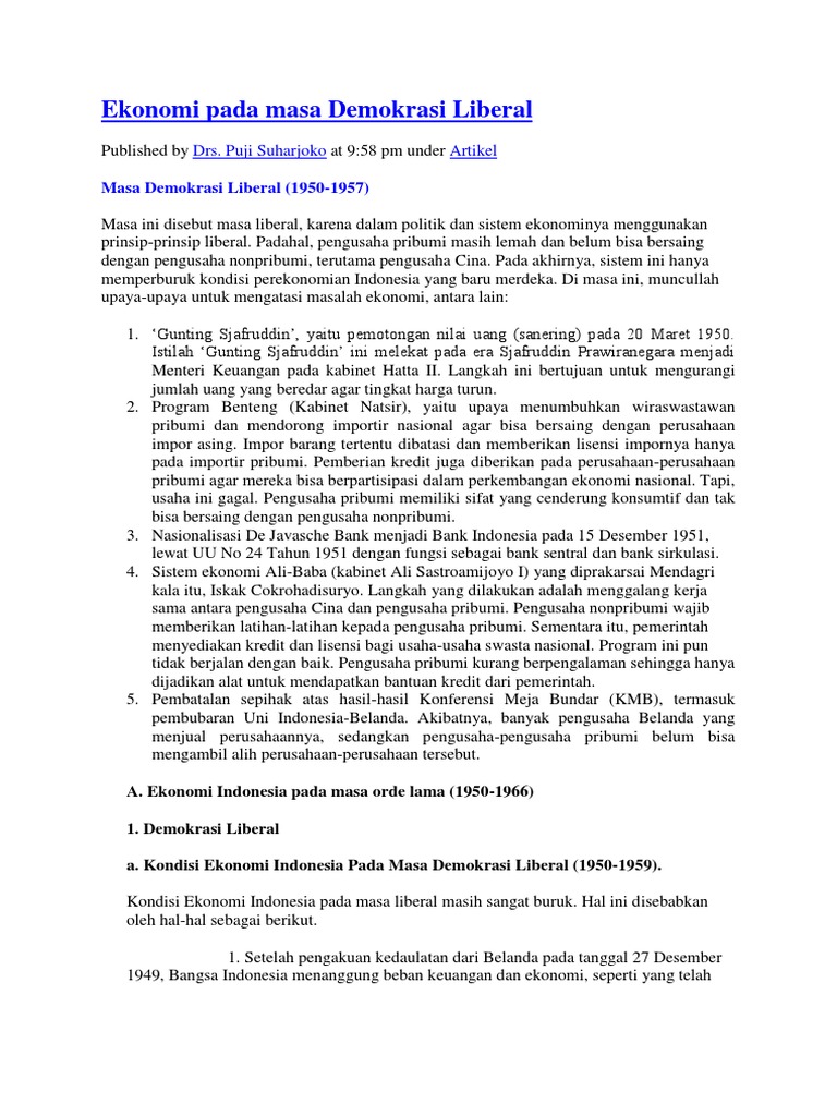 Kebijakan Ekonomi pada Masa Demokrasi Liberal Halaman all - Kompas.com