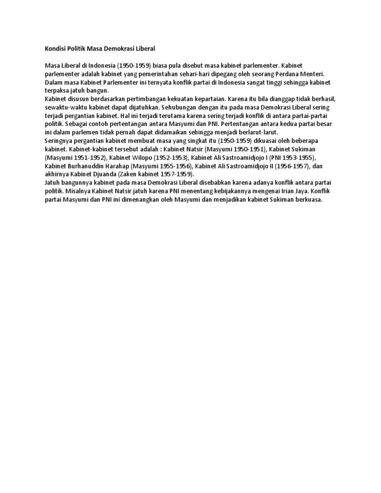 Perkembangan Politik Pada Masa Demokrasi Liberal Dan Demokrasi …