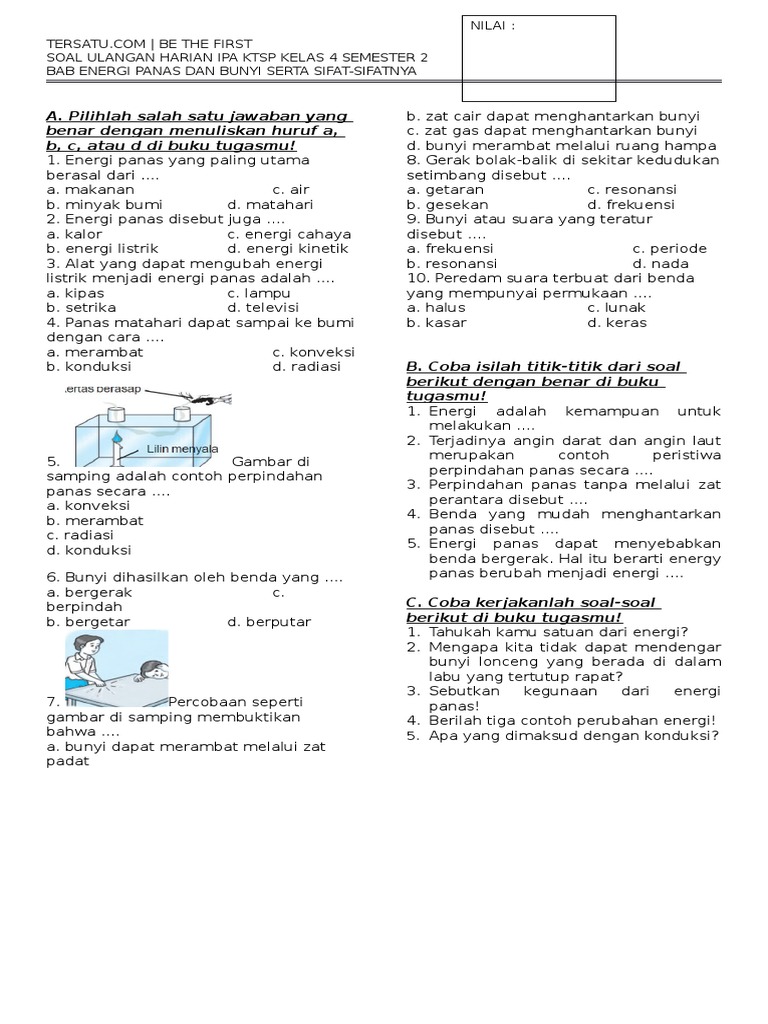 Soal IPA Kelas 4 SD BAB Energi Panas Dan Energi Bunyi Dan Kunci …