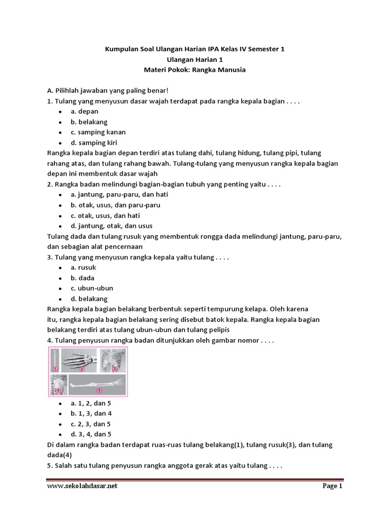 Soal Ulangan IPA Kelas 4 SD Semester 1 Dan Kunci Jawaban - Bimbel …