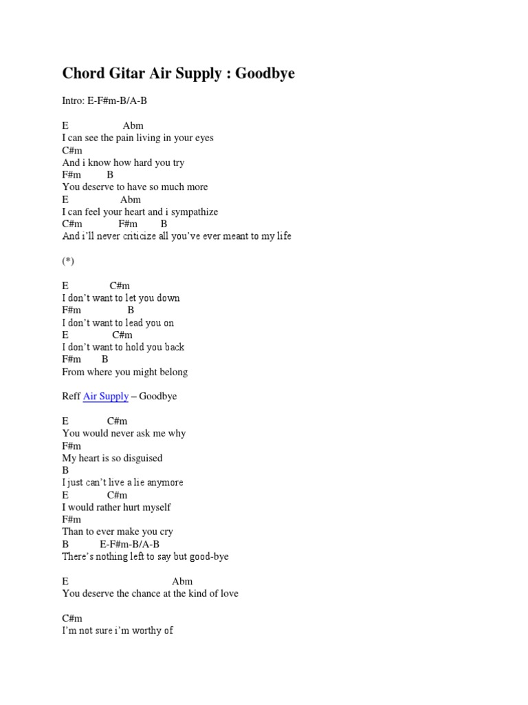 Chord Kunci Gitar Air Supply - Goodbye… - Flash Chord sdn bhd …