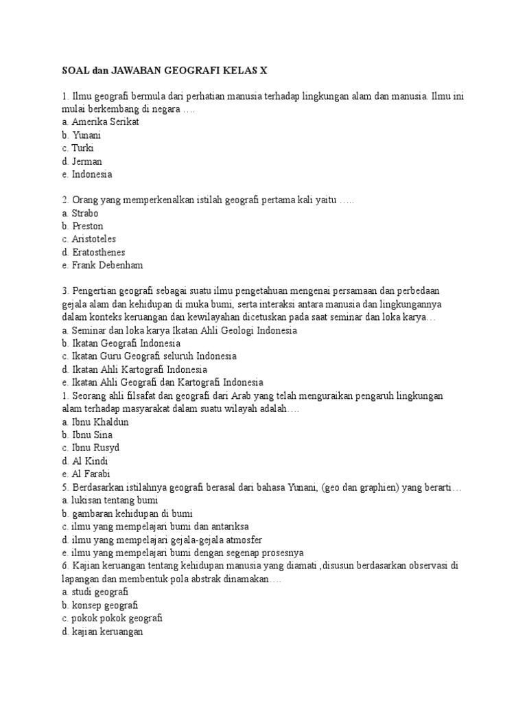 Soal Dan Jawaban Geografi Kelas x