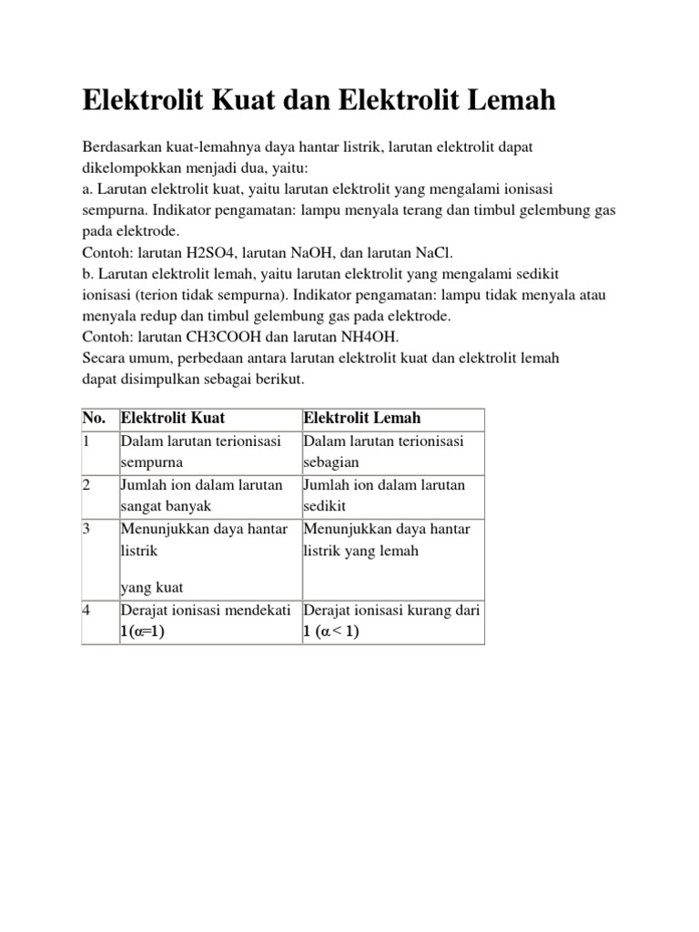 Elektrolit Kuat dan elektrolit Lemah: Pengertian, contoh …