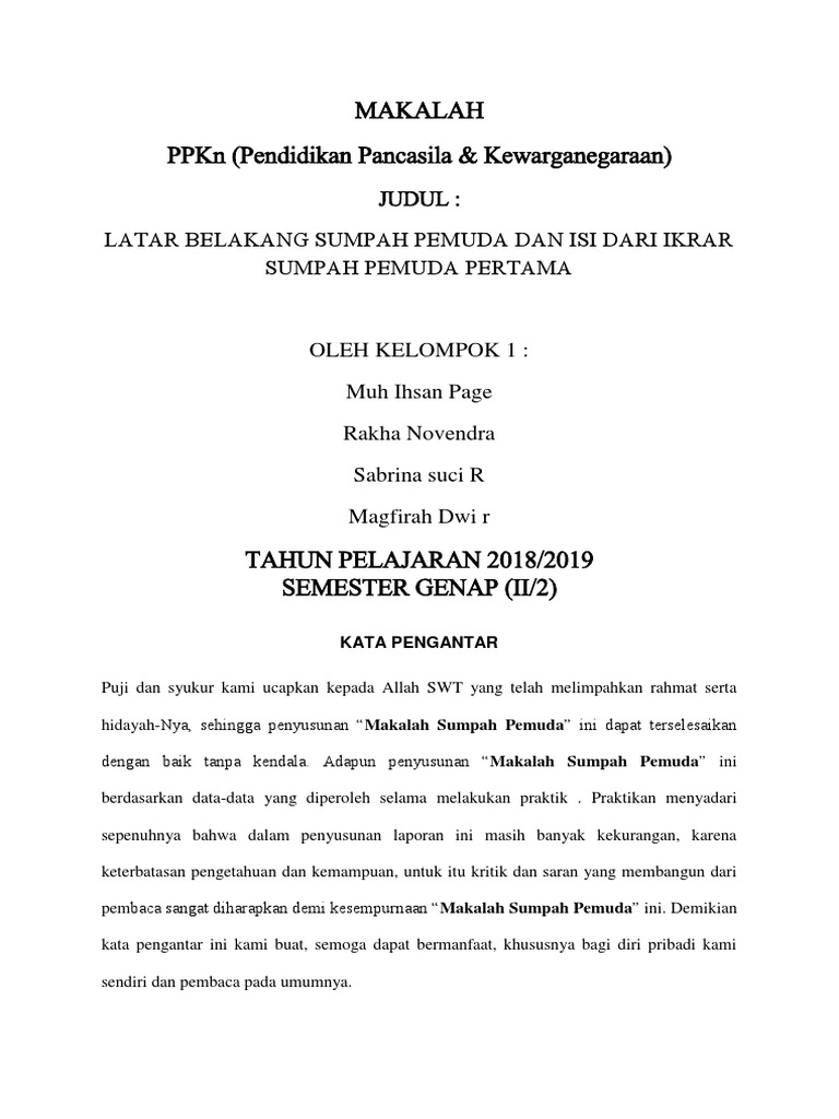 DOC) MAKALAH LATAR BELAKANG SUMPAH PEMUDA & MAKNA IKRAR SUMPAH …