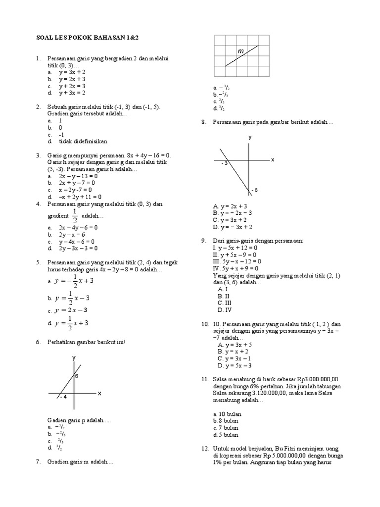 DOC) 3. CONTOH SOAL LATIHAN MATEMATIKA PERSAMAAN GARIS LURUS KELAS 8 SMP | Paijo Jowo - Academia.edu