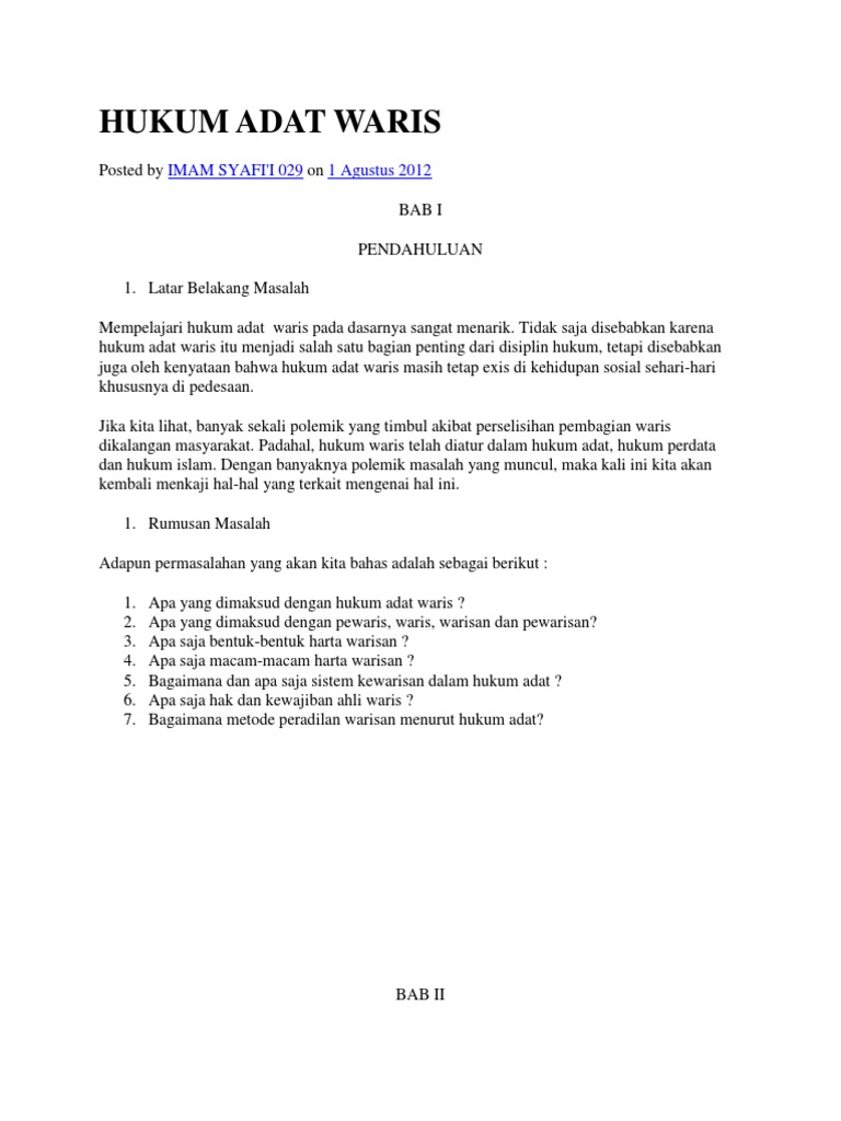 DOC) CONTOH MAKALAH HUKUM WARIS ISLAM DI INDONESIA (bahan) | muhammad hafidudin - Academia.edu