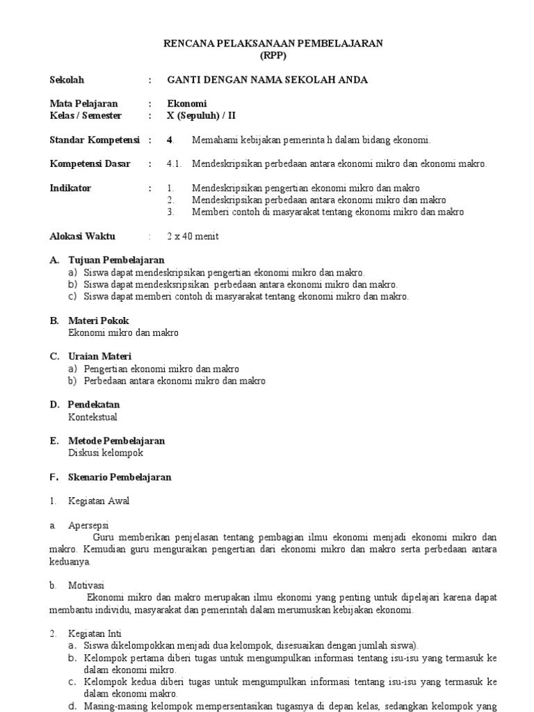 RPP Ekonomi 1 Lembar Kelas 10 11 12 Semester 1 dan 2 Revisi 2020 - Info Pendidikan Terbaru