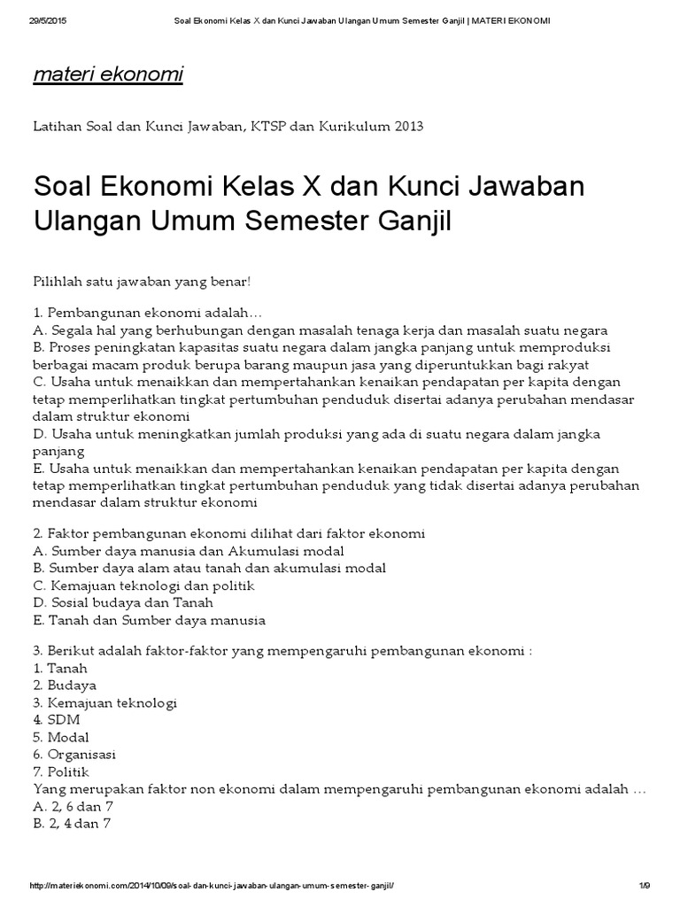 Contoh Soal Ekonomi Kelas 10 Semester 1 - Dapatkan Contoh
