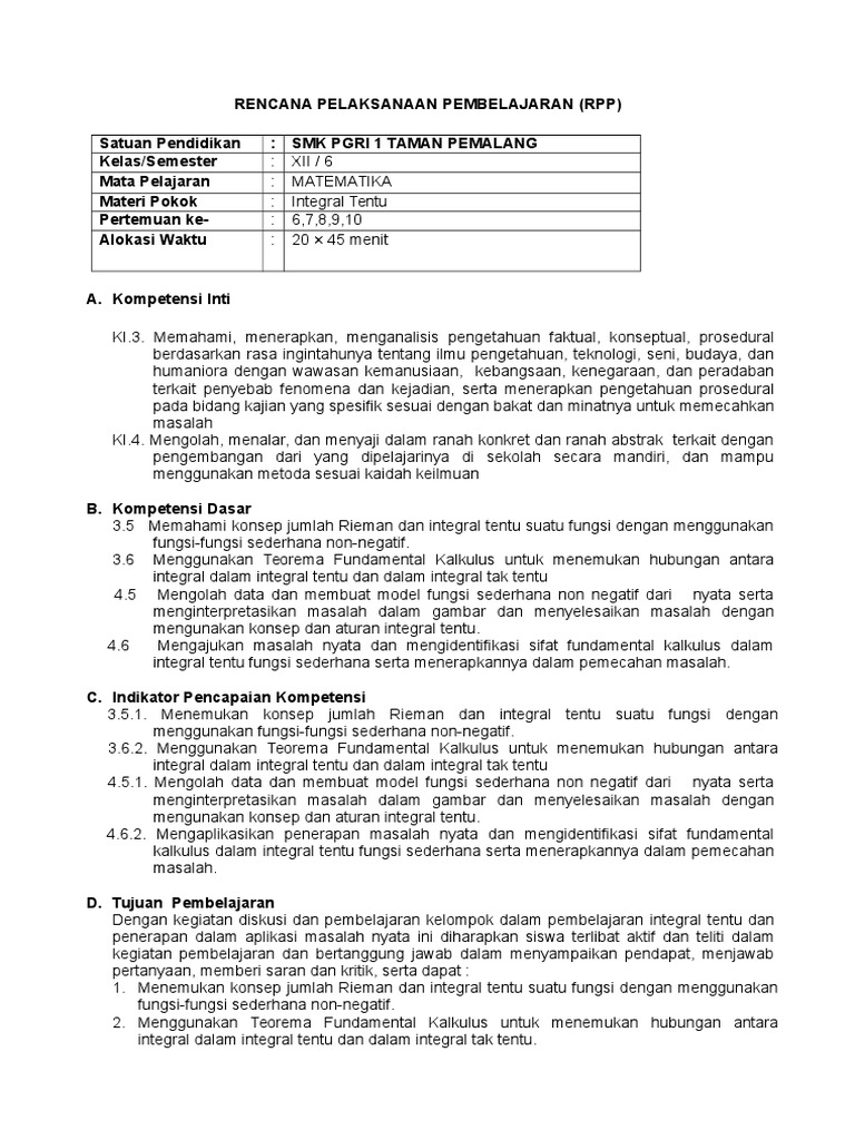 Rpp Integral kelas XII - [DOCX Document]