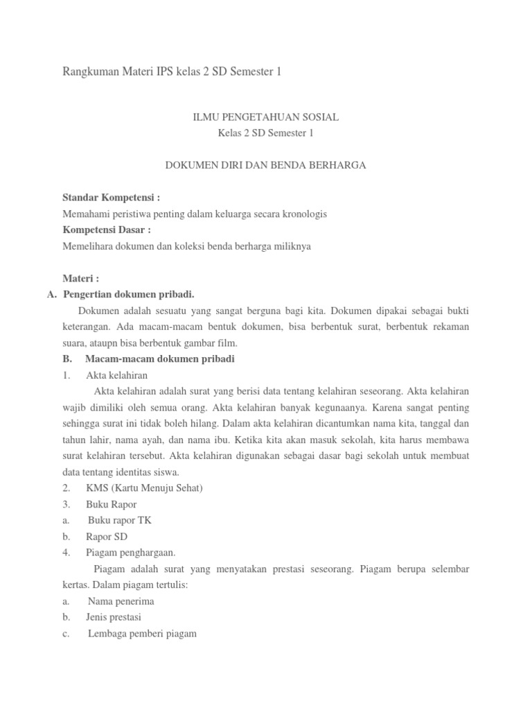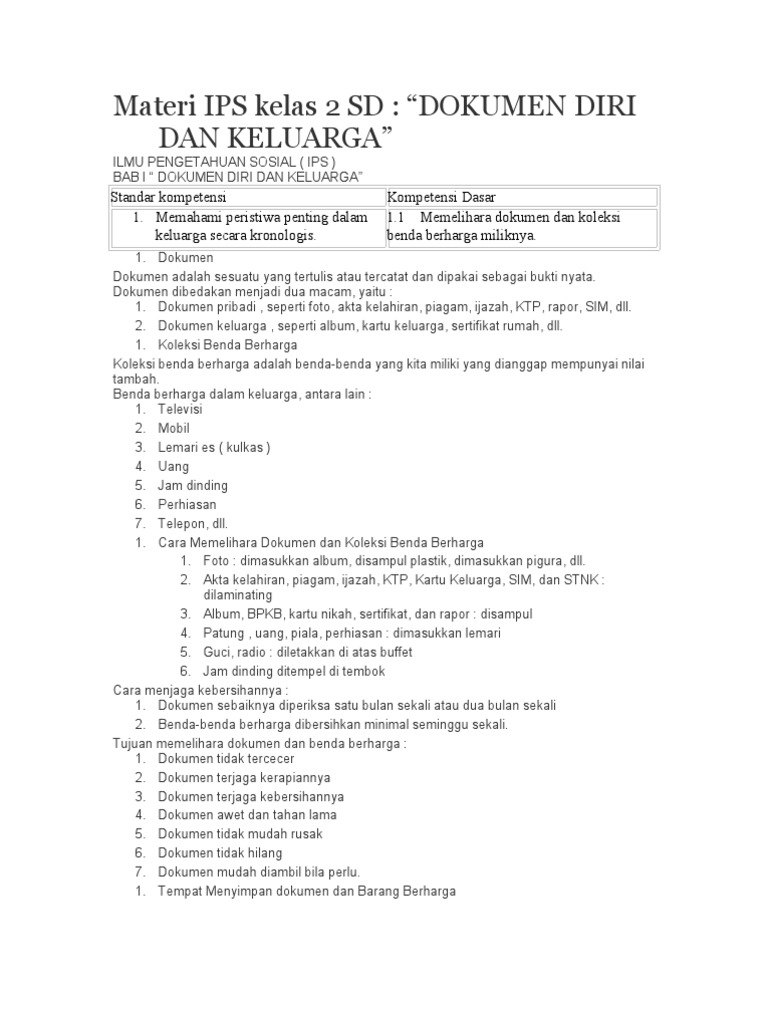 Contoh Materi Pelajaran SD Kelas 2 Mapel IPS DOKUMEN DIRI DAN BENDA BERHARGA - RIFANFAJRIN.COM