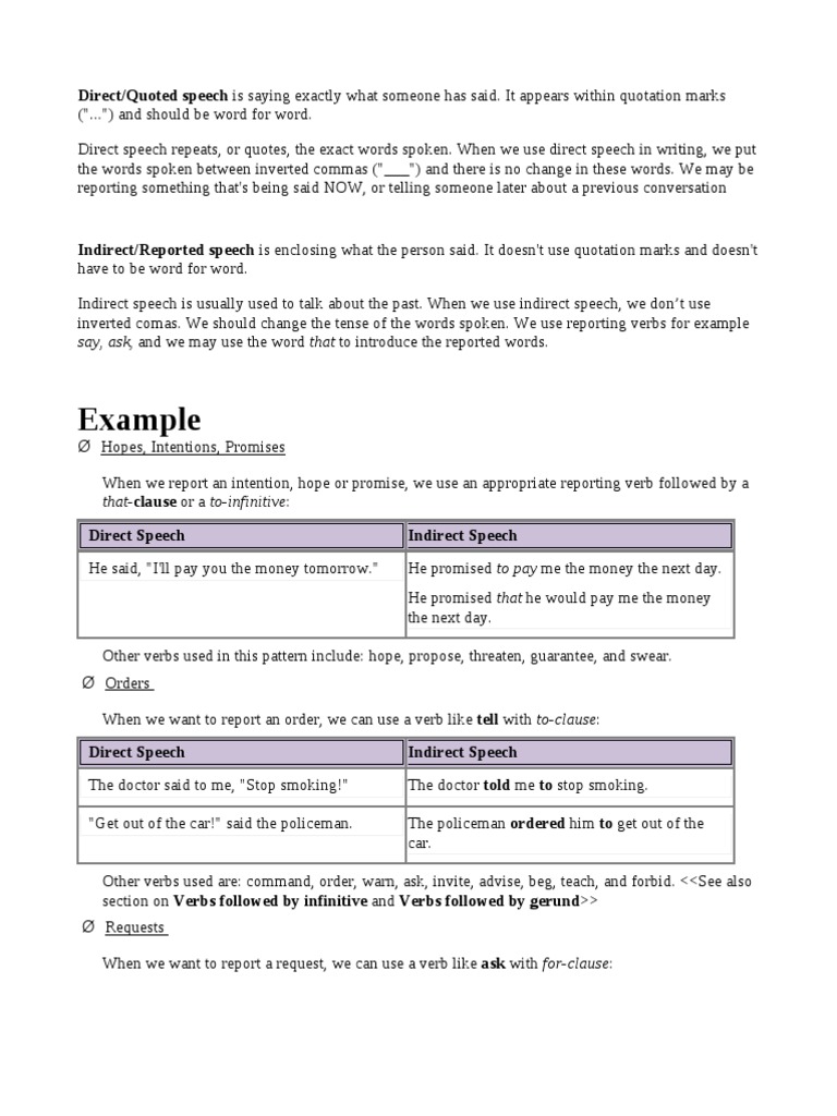Direct and Indirect Speech | Perfect (Grammar) | Verb