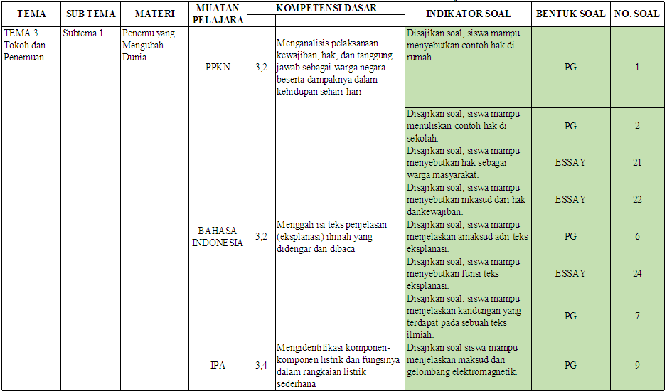 Kisi-kisi UTS kelas 6 Tema 3 Subtema 1-2 - antapedia.com