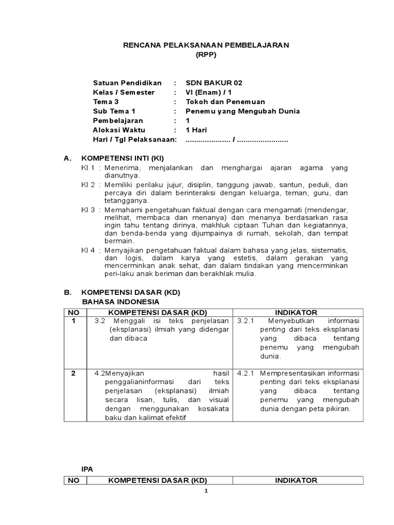 DOC) Contoh RPP K13 Kelas 6 Tema | Dhea Nur Silvia - Academia.edu
