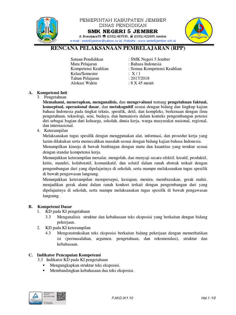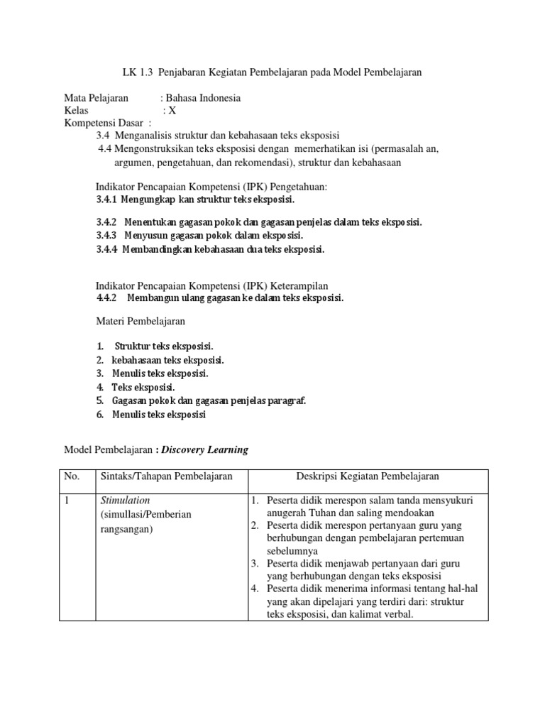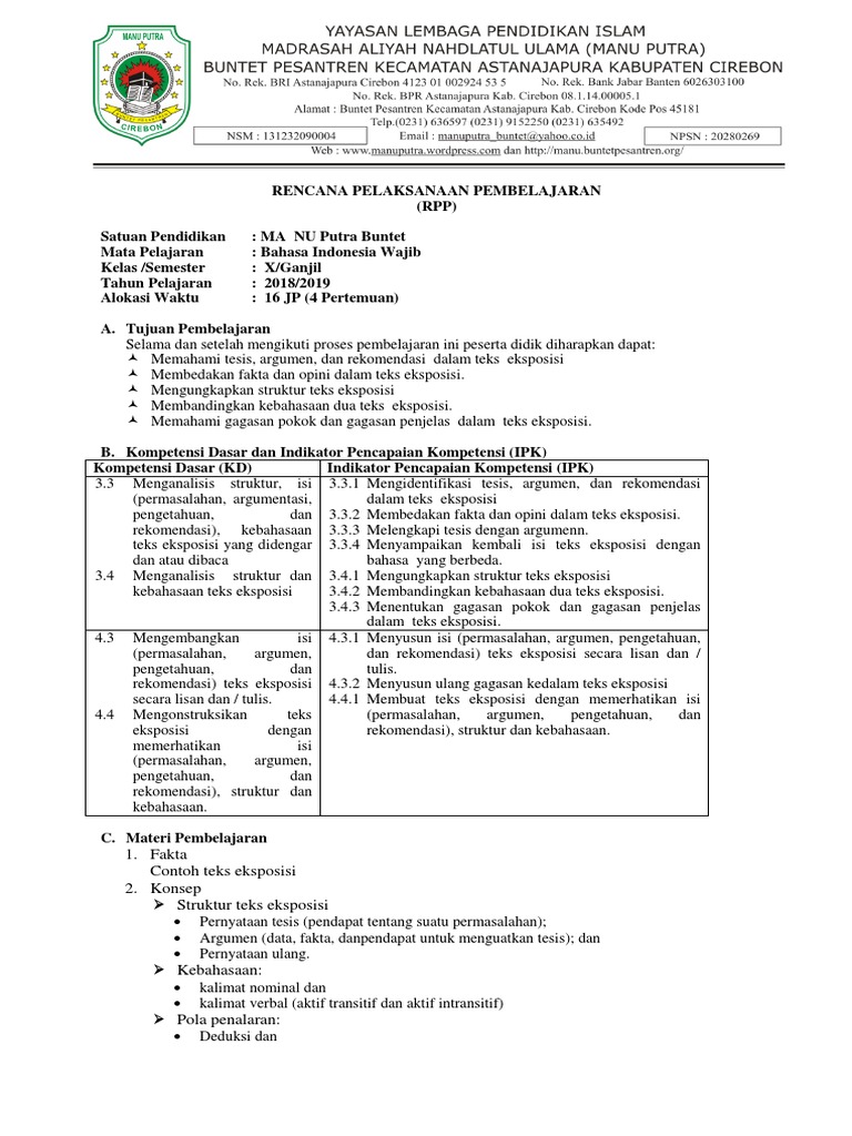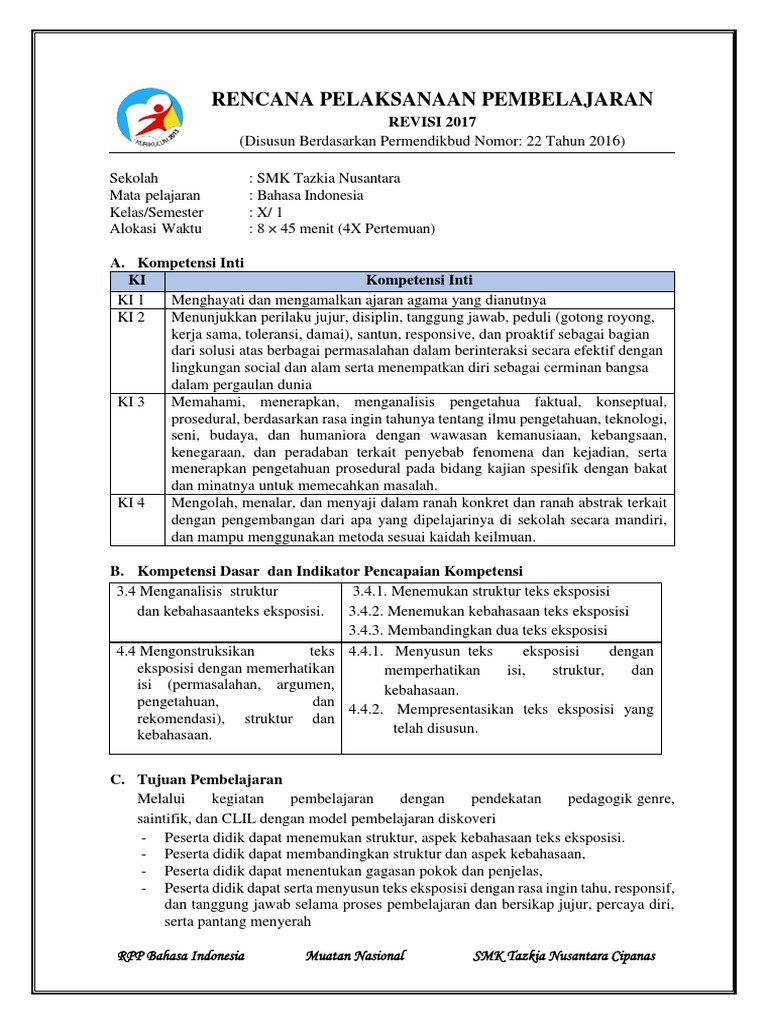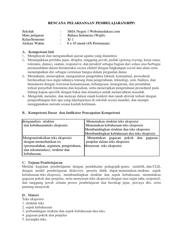 RPP B. Indo Kelas 10 Rev 2018 3.4 Dan 4.4 Teks Eksposis