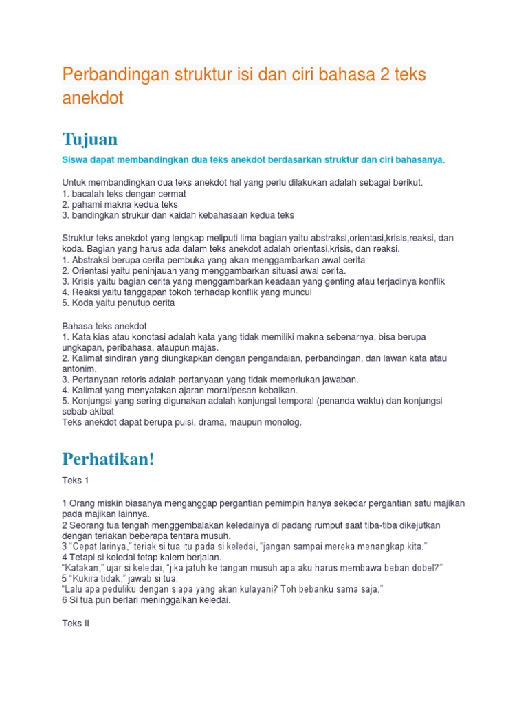 Perbandingan Struktur Isi Dan Ciri Bahasa 2 Teks Anekdot