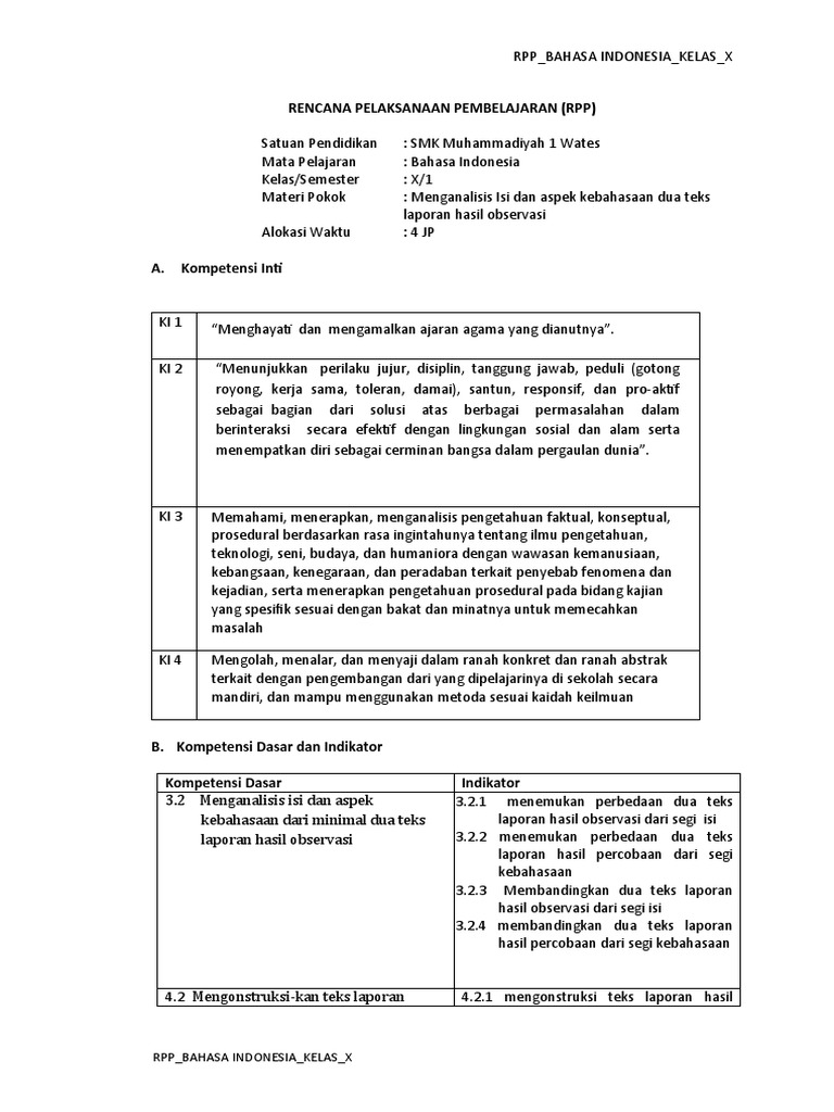 Rencana Pelaksanaan Pembelajaran (Rpp): Rpp_Bahasa Indonesia_Kelas_X