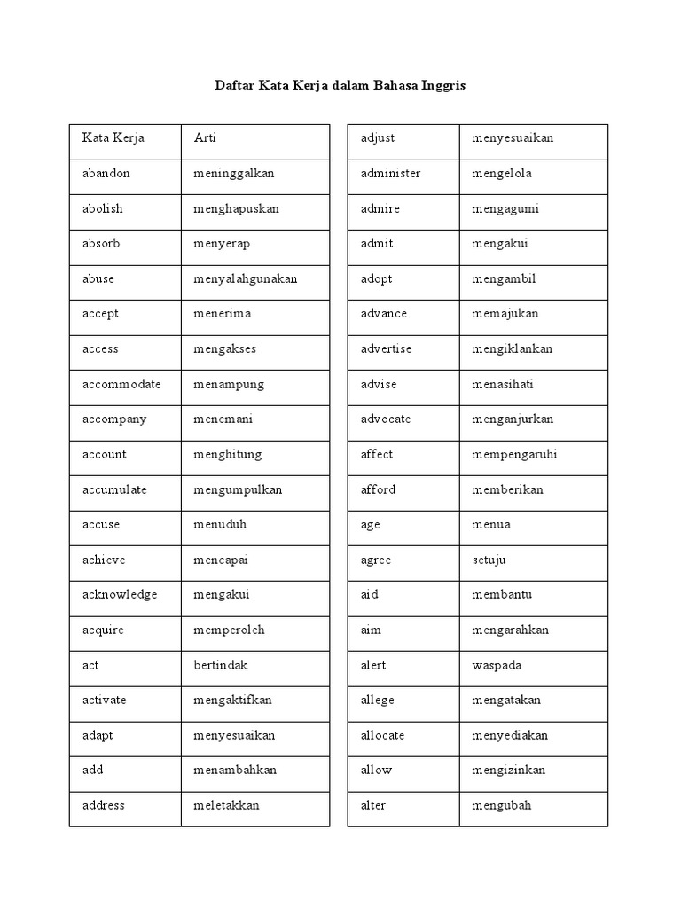 Kata Kata Kerja Dalam Bahasa Inggris - Trend Kata 2019