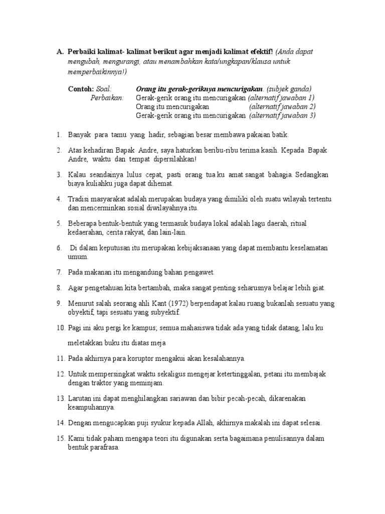 Ejercicio de Kalimat Efektif dan Tidak Efektif