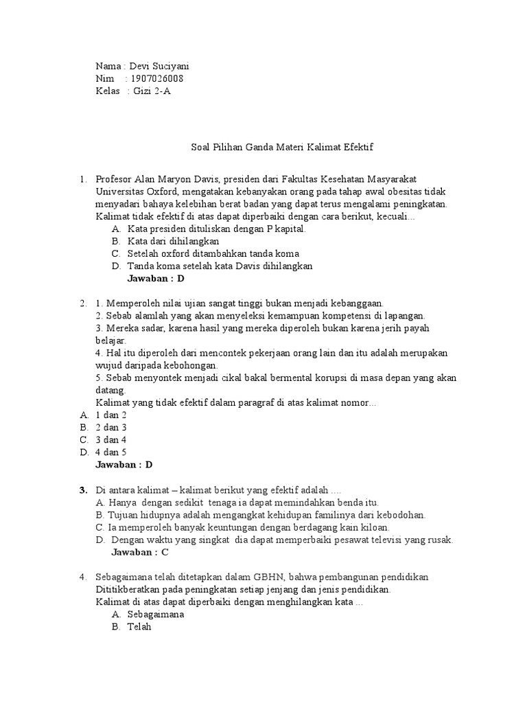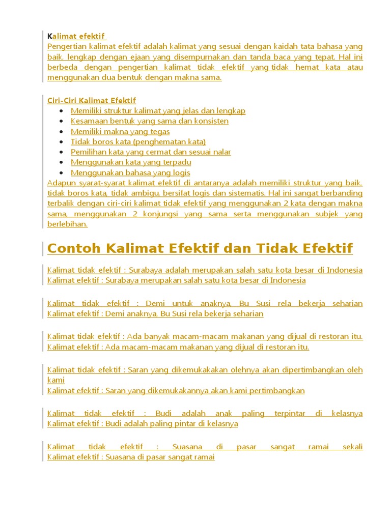 DOC) Kalimat Efektif dan Tidak Efektif | hardianti dia - Academia.edu
