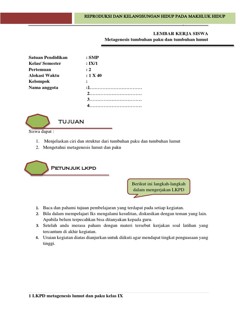 LKPD Metagenesis Tumbuhan Lumut Dan Paku Smp 26